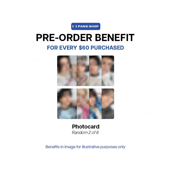 - Benefit: Random photocard 2 out of 8 every $60 purchase